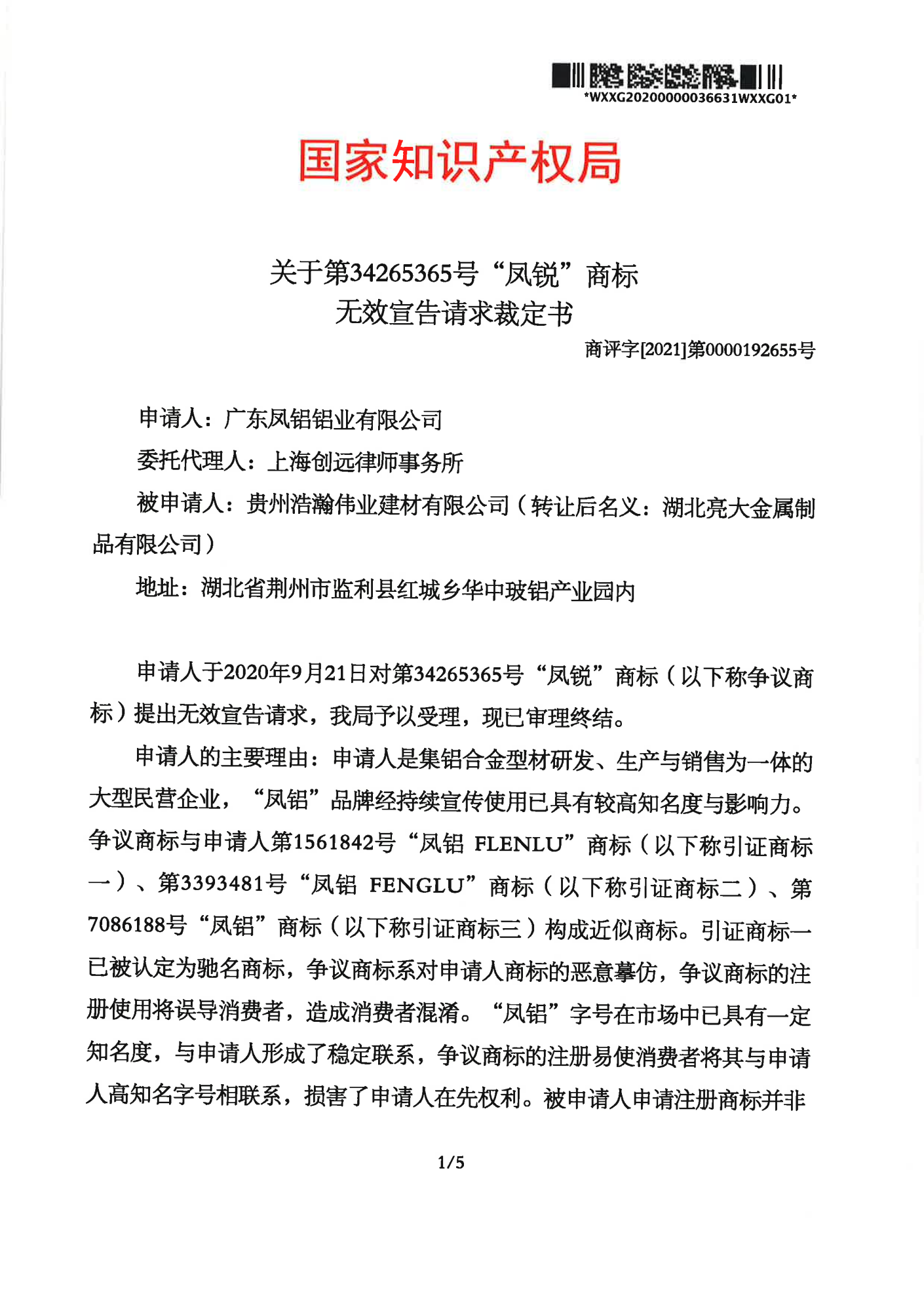楚雄辉知队 | 国家知识产权局:“凤锐”商标无效
