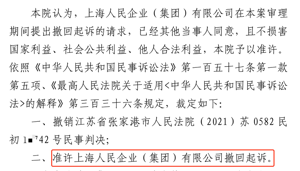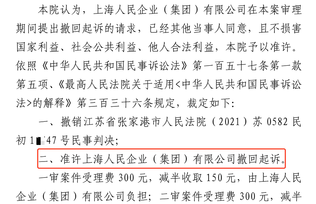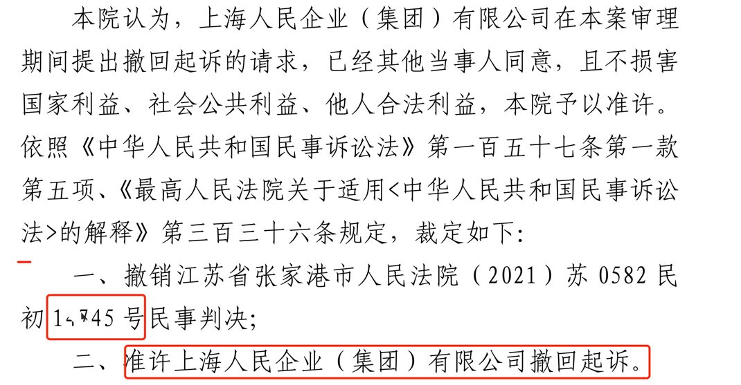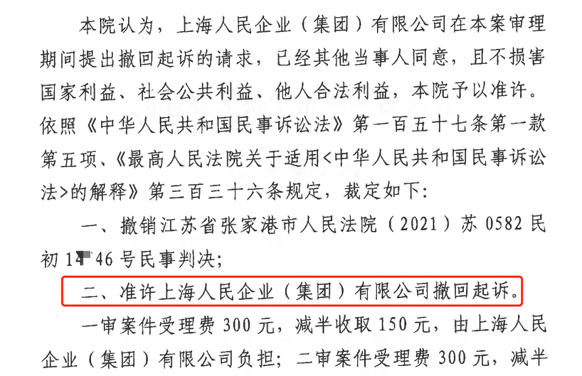 楚雄胜诉佳讯 | 人民企业系列案苏州六案上海人民公司撤诉